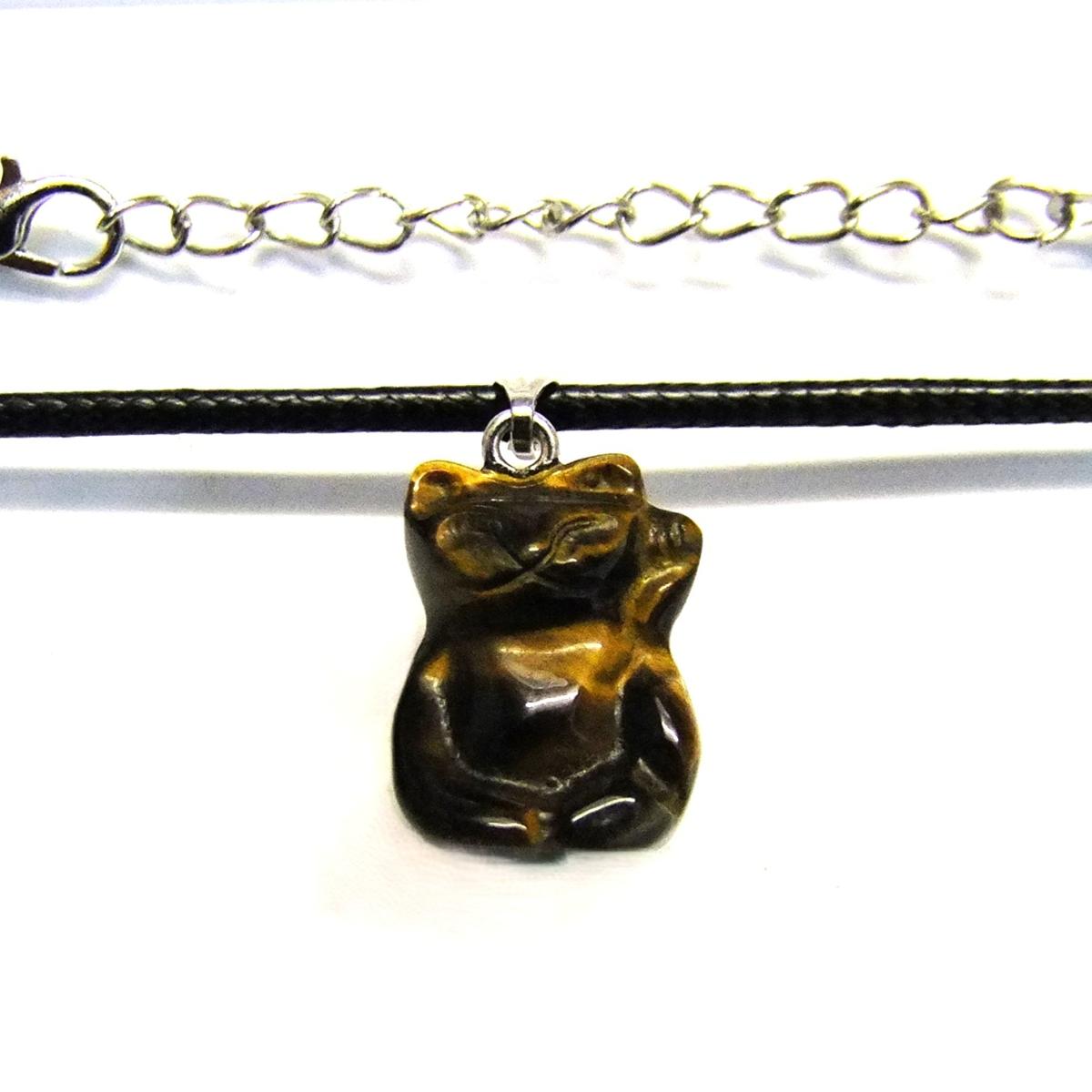 • Gemstone & Waxed Cord Necklace Featuring A Carved Waving Cat Pendant In Tiger's Eye.   SPR16103PEND