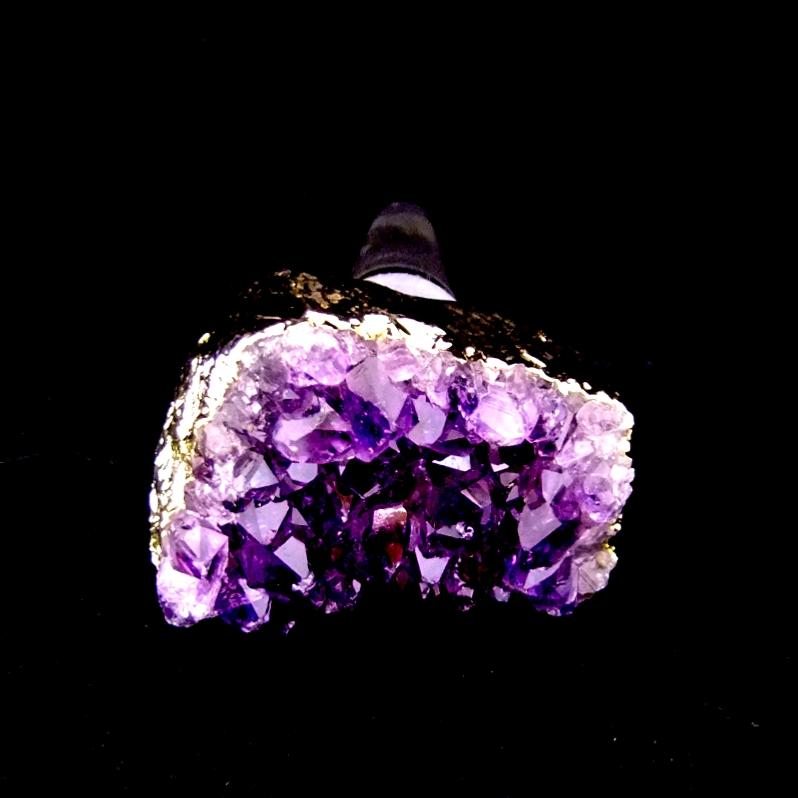 BRAZILIAN AMETHYST DRUZE FEATURING GOLD PLATED BAND.