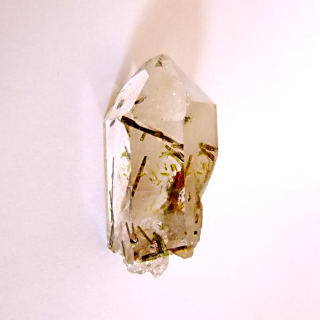 GREEN EPIDOTE IN QUARTZ RAW CRYSTAL SPECIMEN.