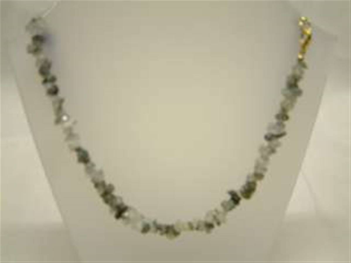 GREEN RUTILE GEM CHIP NECKLACE FEATURING A GOLD PLATED LOBSTER STYLE CLASP (10 PACK). 24" LONG. 24g.