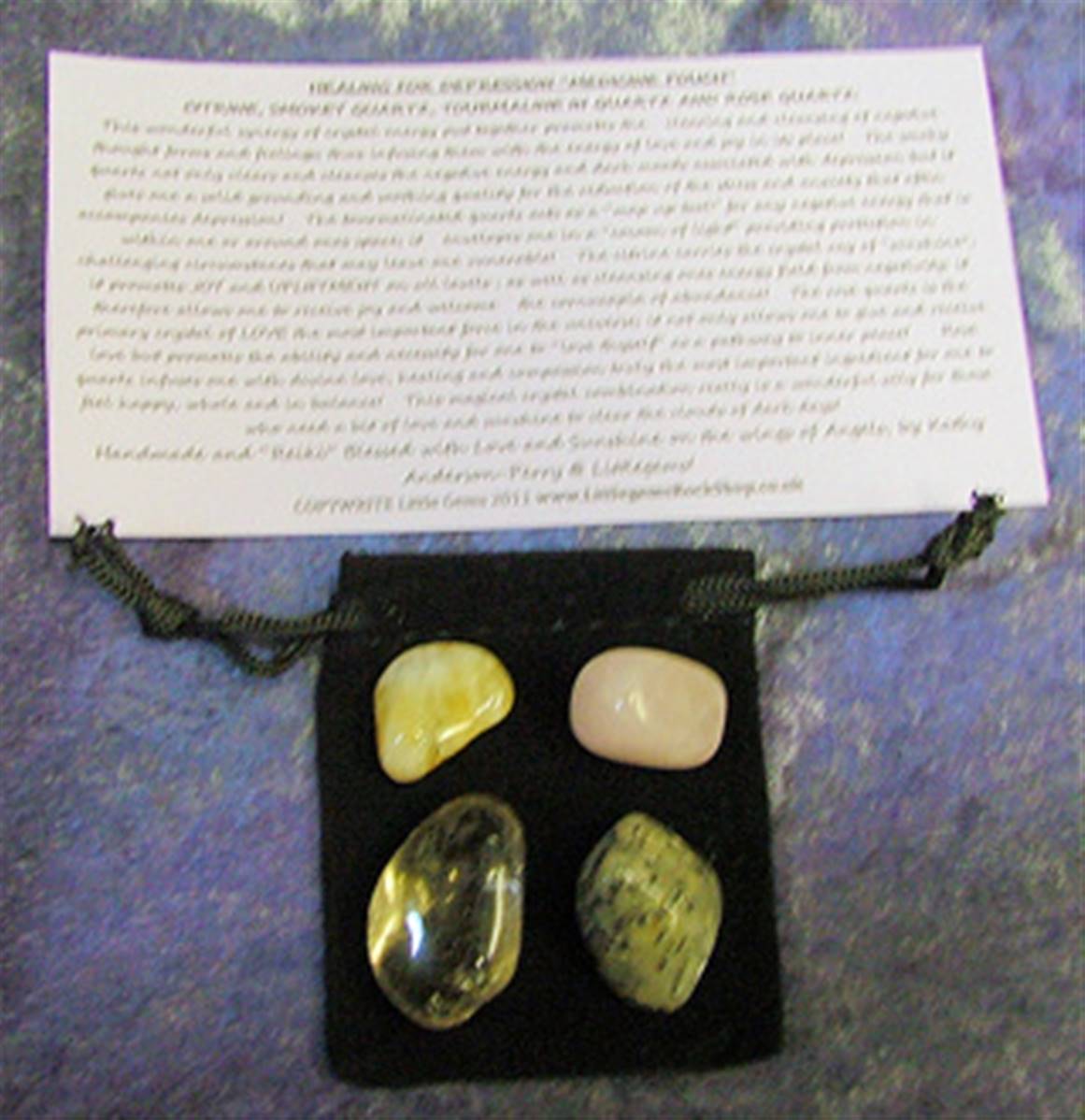 HEALING FOR DEPRESSION "MEDICINE POUCH" CITRINE, SMOKEY QUARTZ, TOURMALINE IN QUARTZ AND ROSE