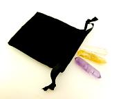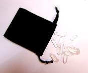 | | DIAMONTINA LASER QUARTZ POINTS SET OF 10 IN A BLACK VELVET DRAWSTRING POUCH.