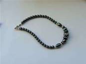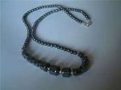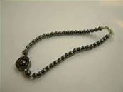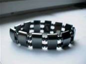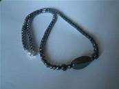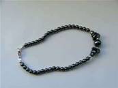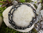 HEMATITE SPRUNG WIRE BRACELET FEATURING ROUND AND OVAL BEADS.