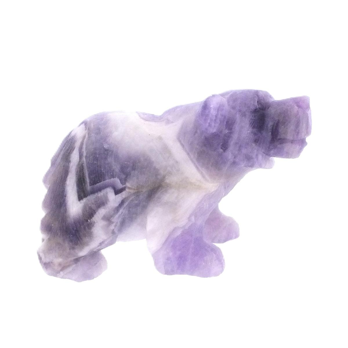 Highly Detailed Carving Of A Grizzly Bear In Brazilian Chevron Amethyst.