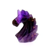 | CARVING OF A UNICORN HEAD IN AMETHYST.