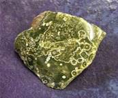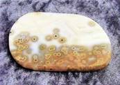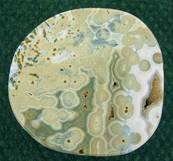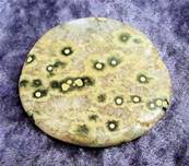 | ORBICULAR JASPER POLISHED SLICE SPECIMEN.