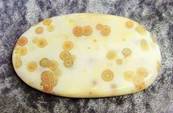 | ORBICULAR JASPER POLISHED FACE NODULE SPECIMEN WITH FLAT CUT BASE TO STAND.