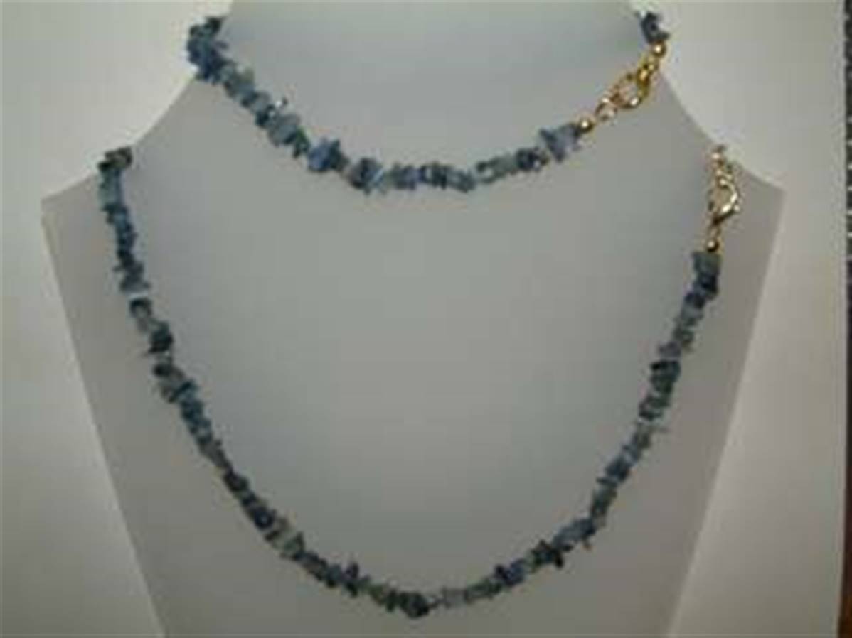 KYANITE GEM CHIP 18" NECKLACE & 7" BRACELET TWO PIECE SET. EACH PIECE FEATURES A GOLD PLATED LOBSTER STYLE CLASP. SET = 30g.
