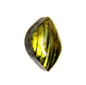 | | LABRADORITE POLISHED CABOCHON STONE IN CATS EYE SHAPE, ONE DOME POLISHED FACE WITH FLAT CUT BACK FACE.