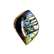 | LABRADORITE POLISHED CABOCHON STONE IN TEARDROP SHAPE, ONE DOME POLISHED FACE WITH FLAT CUT BACK FACE.