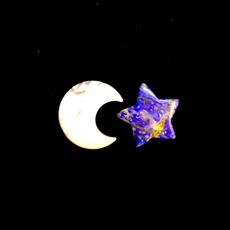 LAPIS LAZULI STAR & WHITE HOWLITE MOON CARVINGS.