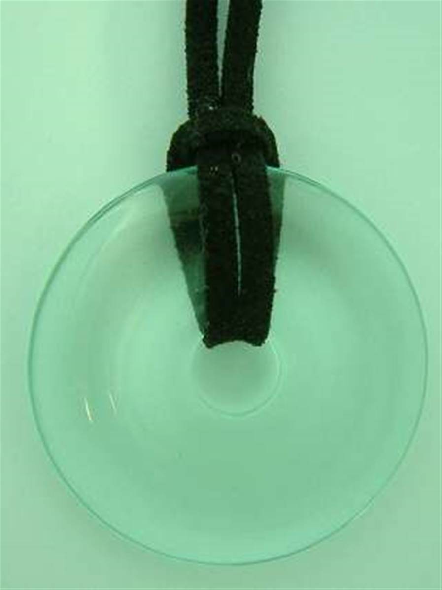 LARGE BLUE OBSIDIAN GLASS GEMSTONE DONUT. 40MM DIA. 16g. BLACK SUEDE THONG SUPPLIED.