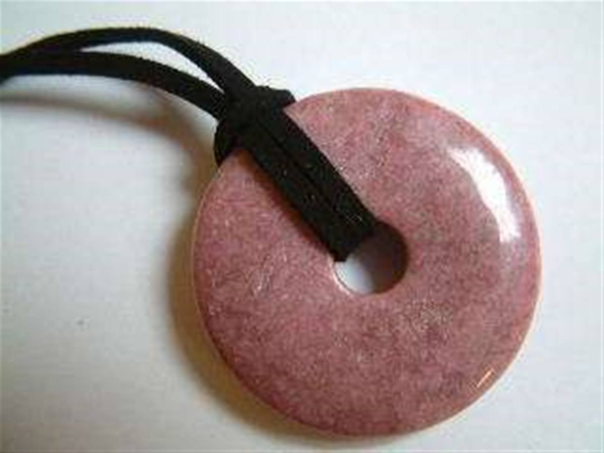 LARGE RHODONITE GEMSTONE DONUT ON THONG. 42MM DIA.
