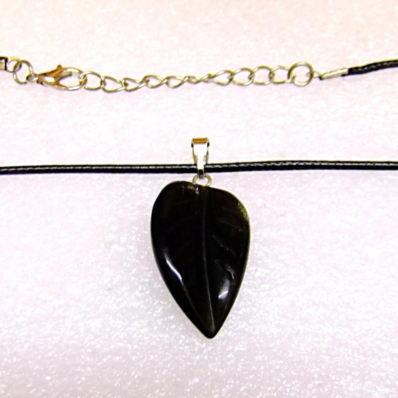 • Leaf Style Gemstone Pendant on waxed cord in Black obsidian.   SPR15264