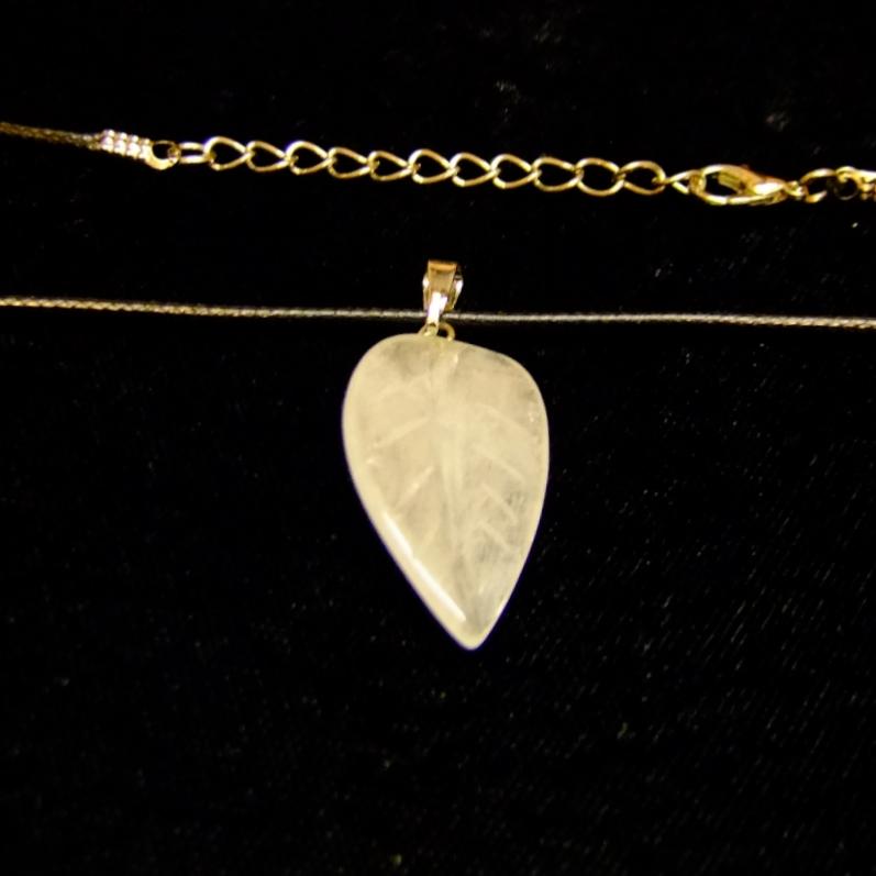 • Leaf Style Gemstone Pendant on waxed cord in Quartz.   SPR15265