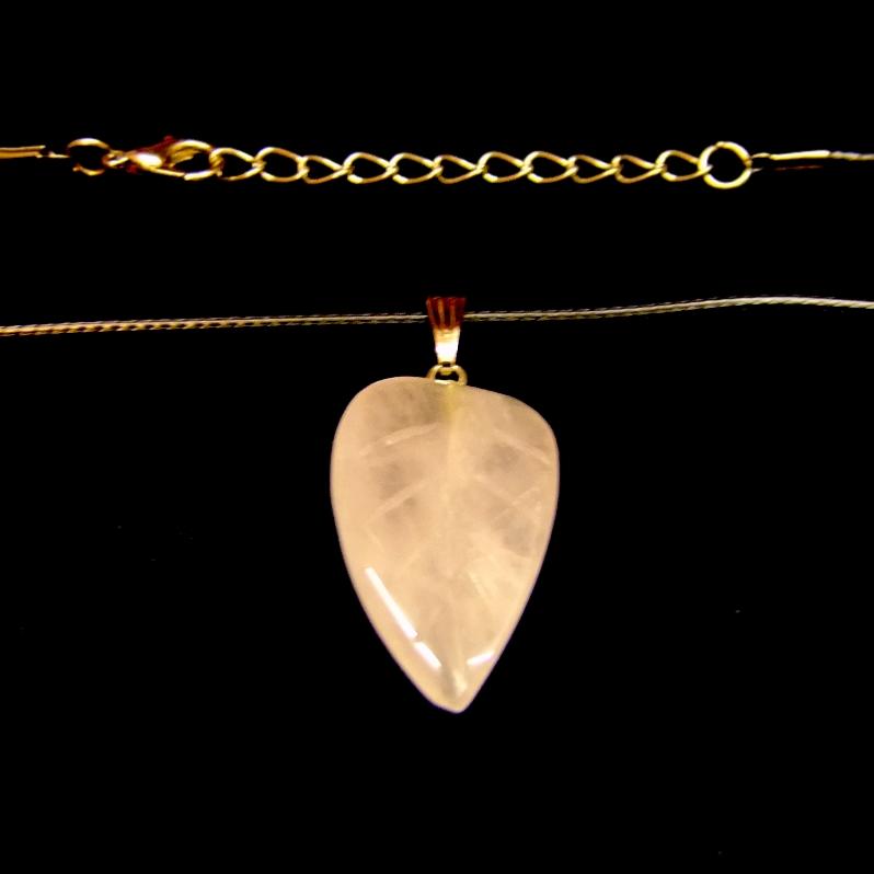 Leaf Style Gemstone Pendant on waxed cord in Rose Quartz.   SPR15266