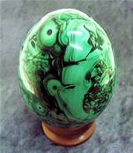 MALACHITE EGG WITH WOODEN DISPLAY STAND. SP8423POL