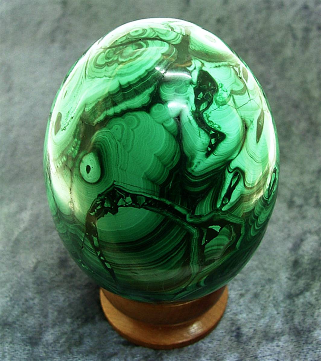 • MALACHITE EGG WITH WOODEN DISPLAY STAND. SP8423POL