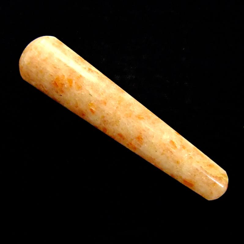 MASSAGE/ HEALING WAND IN SUNSTONE, TAPERED WITH ROUNDED ENDS.