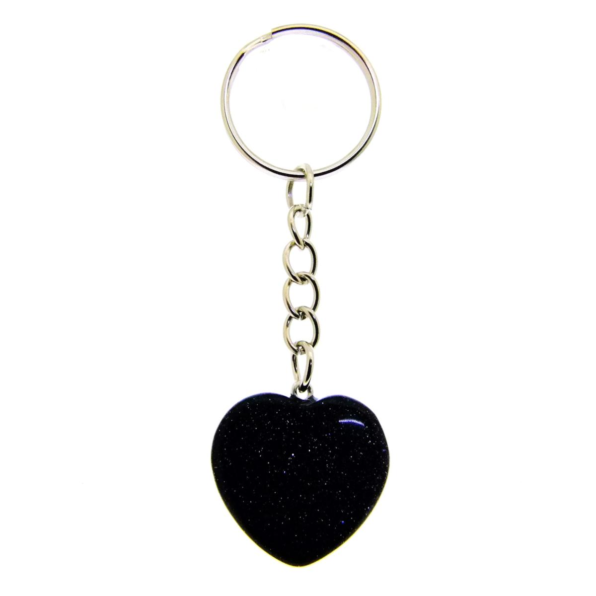 Mini Puff Heart Gemstone Keyring In Blue Goldstone. SPR16436POL