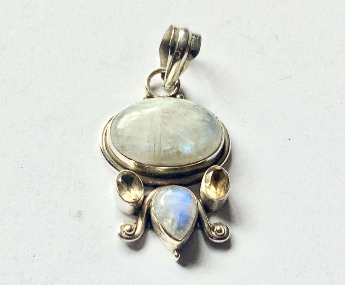 Moonstone Pendant set with with faceted citrine in 925 silver 4.5cm inc bail . PENRQGAR12