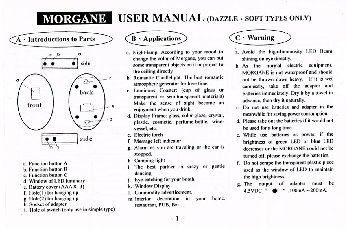 WITH ALTERNATING RED, GREEN & BLUE LIGHTS OR MIXTURES OF ALL THREE COLOURS, HAS SEVERAL PROGRAMABLE MODES.