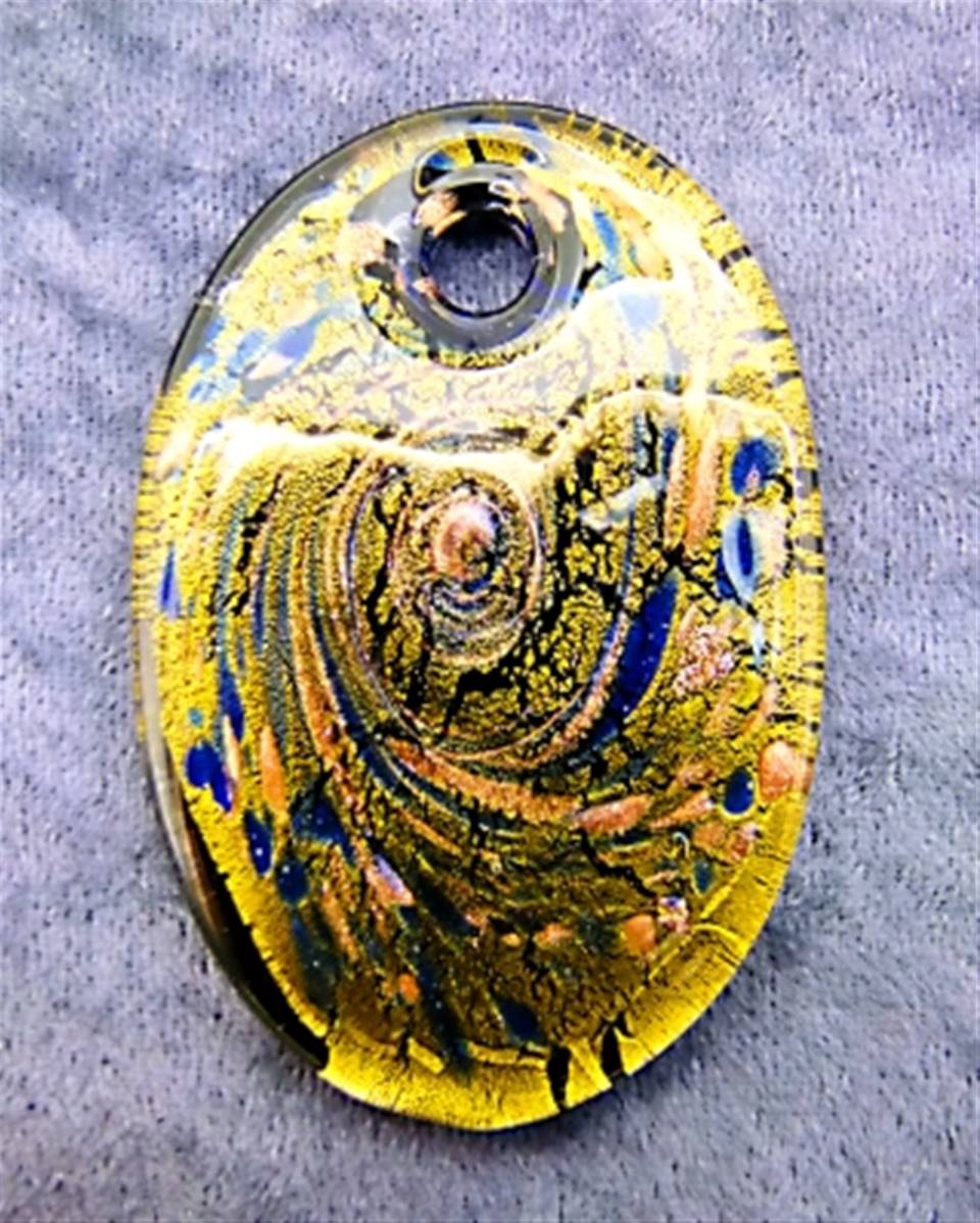 IN GOLD WITH WITH BLACK, BLUE & COPPER SWIRLS.