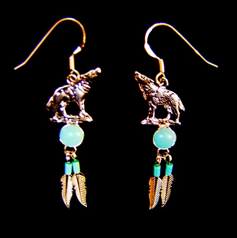 NATIVE AMERICAN SILVER WITH TURQUOISE WOLF EARRINGS. 483E