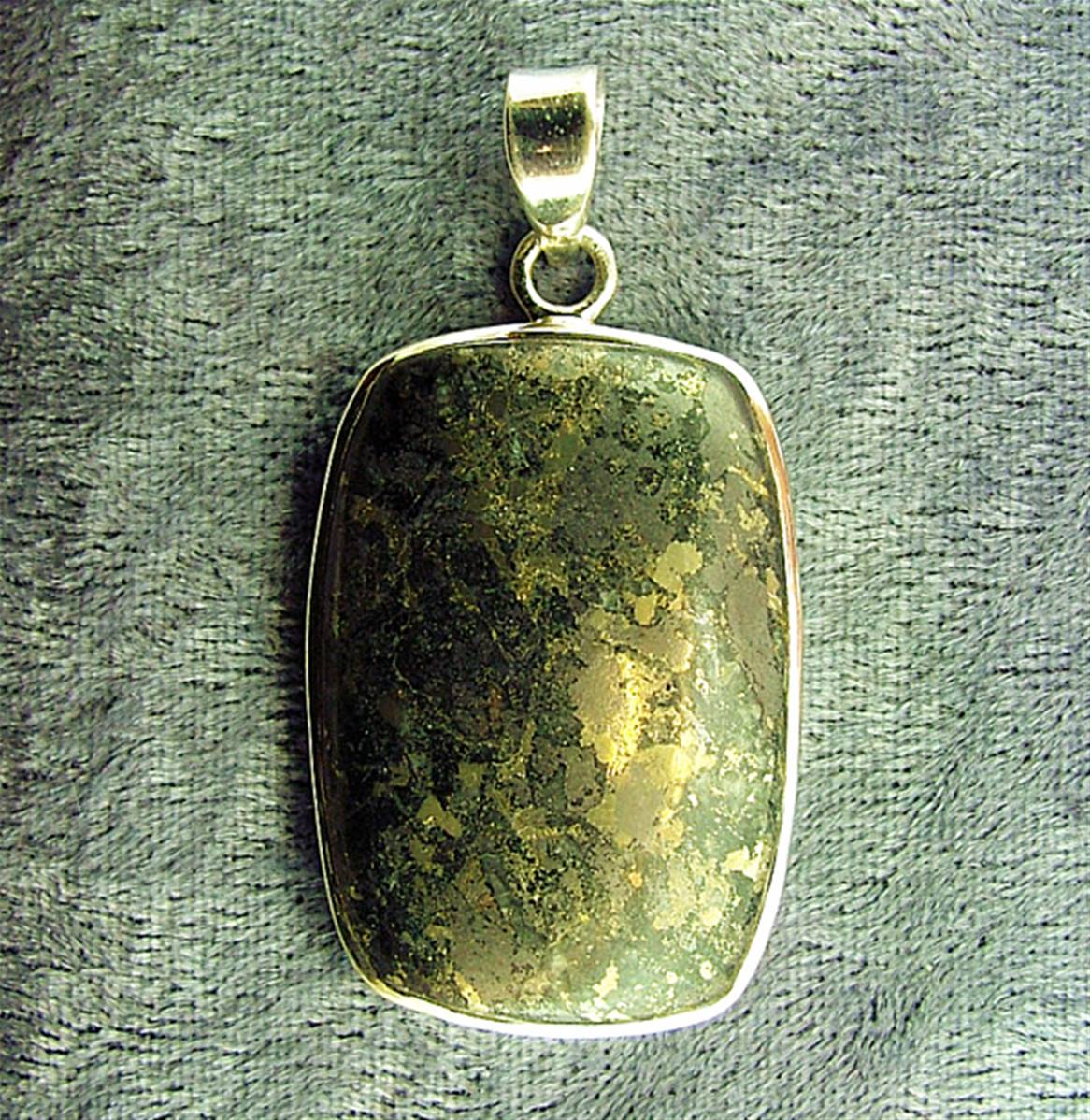 THIS PENDANT FEATURES A SINGLE LARGE POLISHED APACHE GOLD CABOCHON.