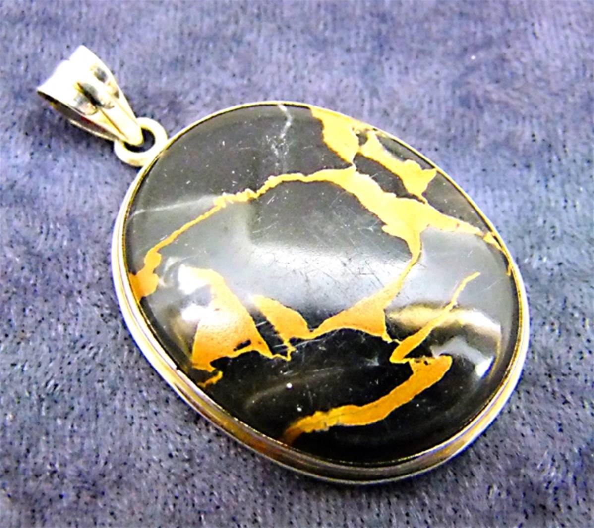 THIS PENDANT FEATURES A SINGLE LARGE DOME POLISHED CABOCHON IN SEPTARIA.