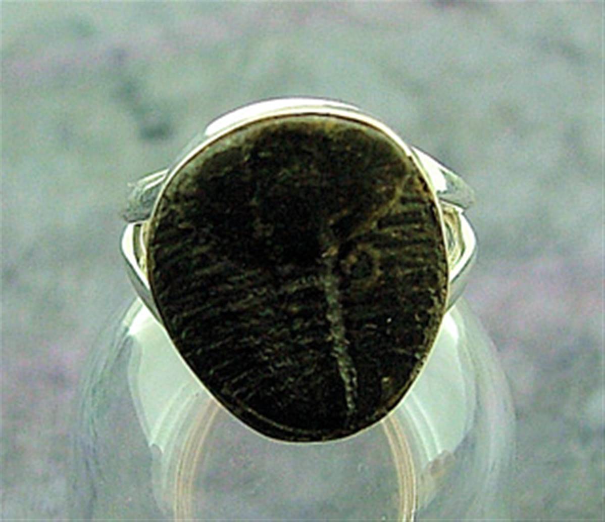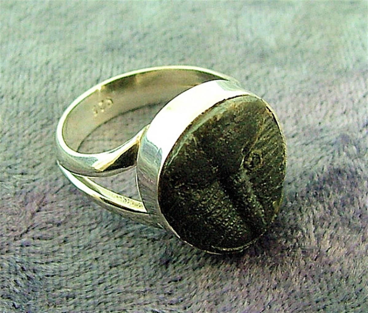 THIS RING IN 925 SILVER HAS BEEN SET WITH A TRILOBITE FOSSIL.