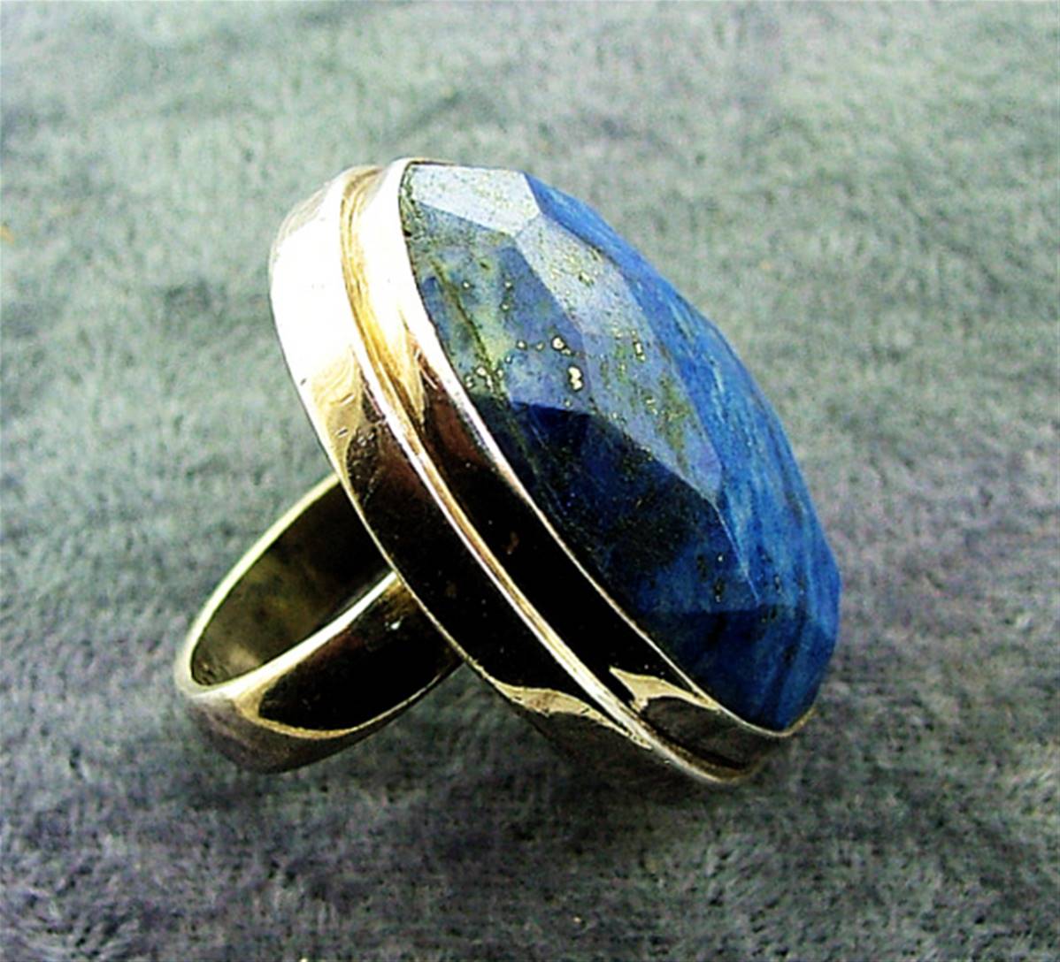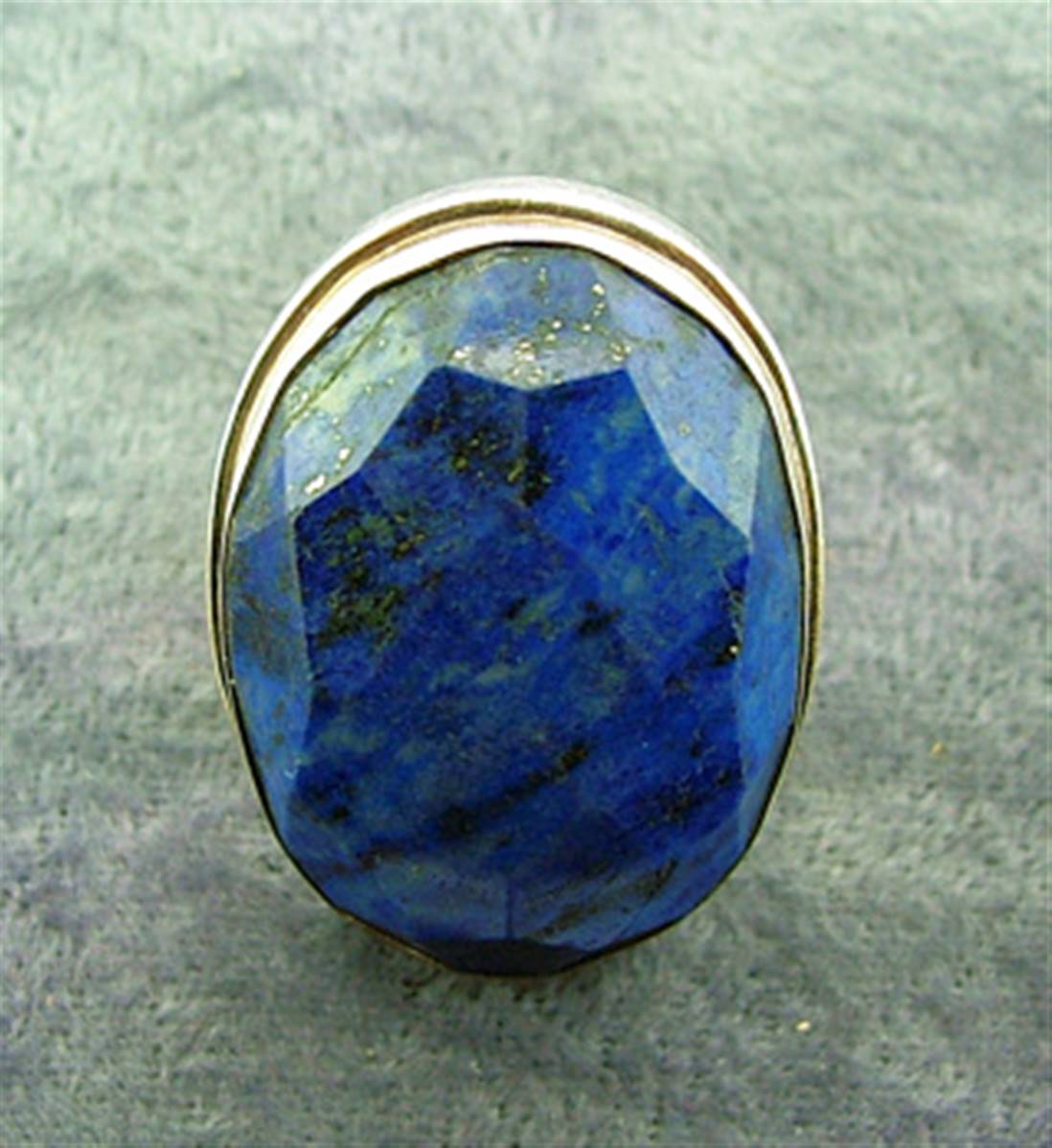FEATURING A LARGE OVAL CUT FACETED CABOCHON IN LAPIS LAZULI.