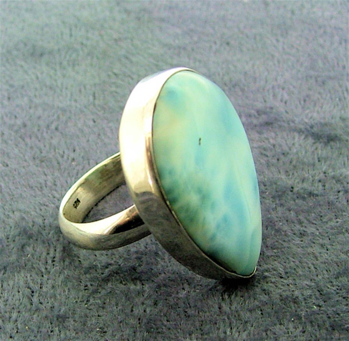 FEATURES A LARGE TEAR DROP SHAPE DOME POLISHED CABOCHON IN LARIMAR.