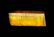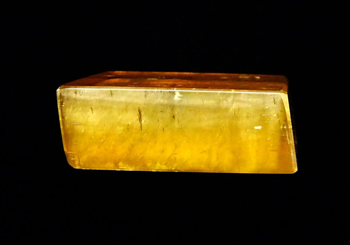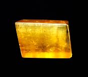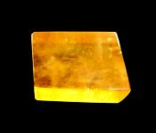 OPTICAL GOLDEN CALCITE POLISHED RHOMBIODAL CRYSTAL SPECIMEN.