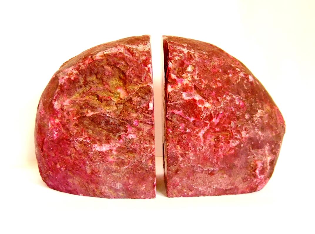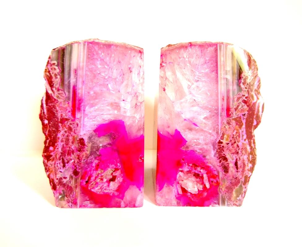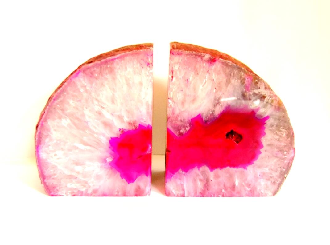 PAIR OF AGATE POLISHED FACE BOOKENDS.