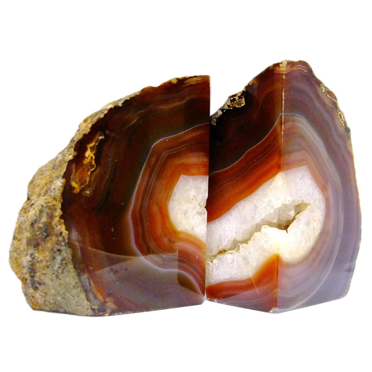 Pair Of Agate Polished Face Split Nodule Bookends.