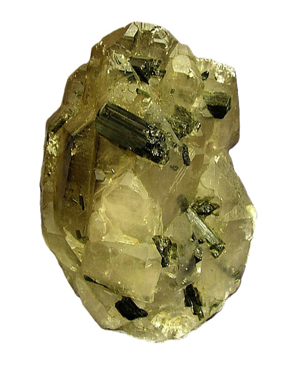 FEATURES GREEN & BLACK TOURMALINE INCLUSIONS & CUT BASE TO ALLOW SPECIMEN TO STAND.