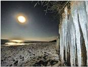 | | The Winter Solistice Moon Illuminates a white fairytale land of cascading ice flowing onto a snowy beach below taken by moonlight 21.12.2010 Professionally printed on 21x15cm art/post card with description and watermarked monochrome image on the reverse. |