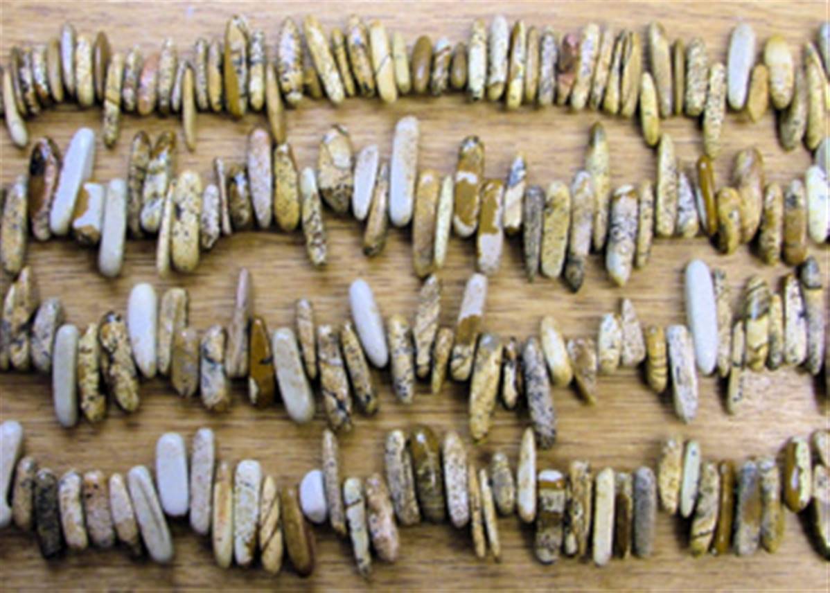 PICTURE JASPER SIDE DRILLED BEADS ON A STRING. SPR7142