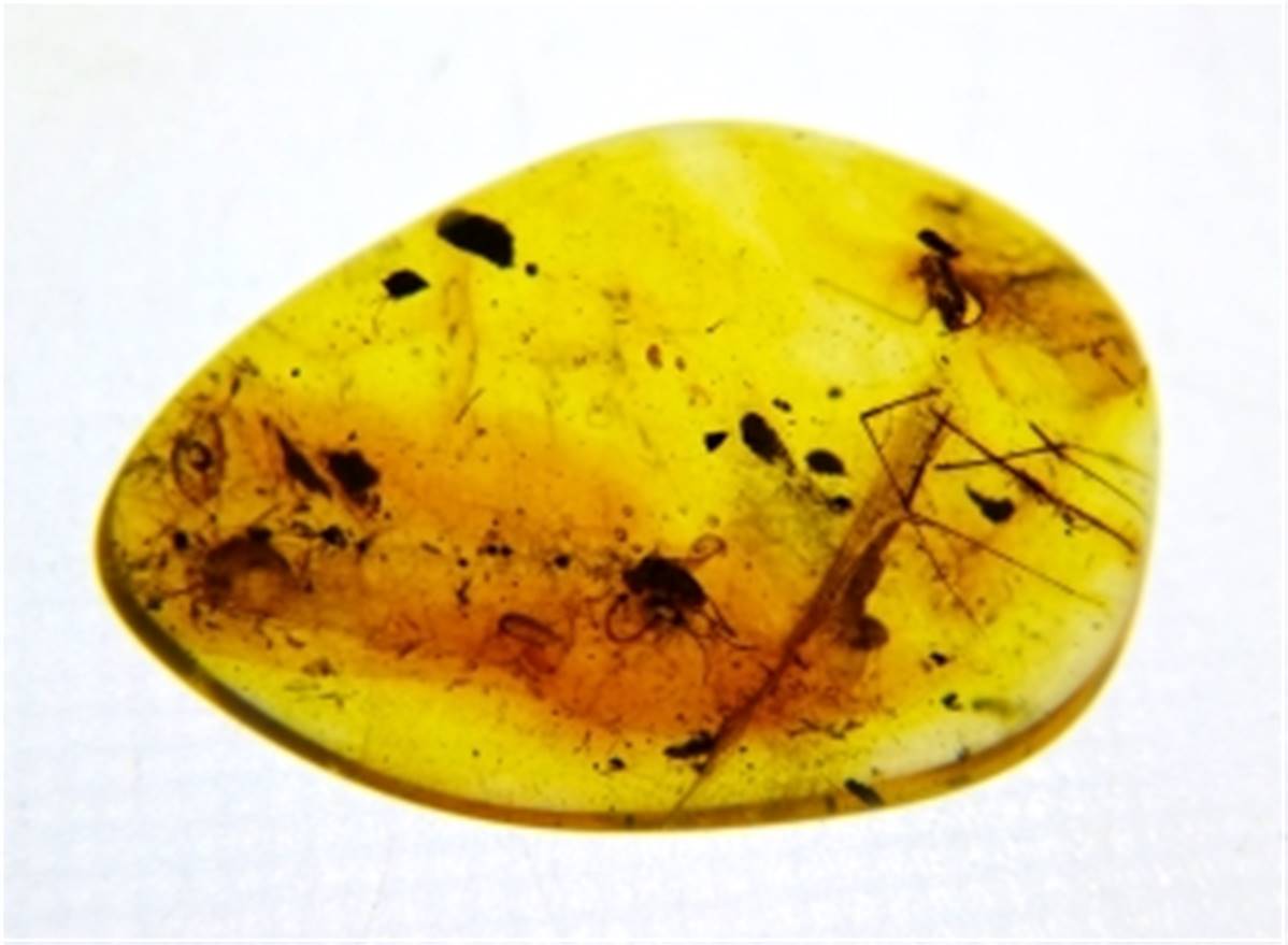 THIS SPECIMEN FEATURES VARIOUS TRAPPED WHOLE INSECTS & INSECT FRAGMENTS.