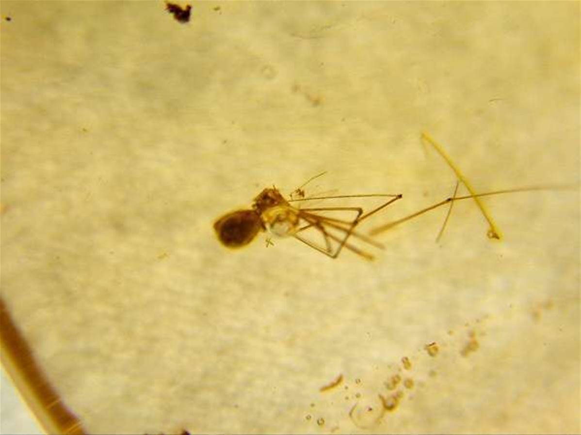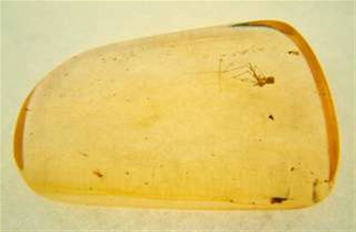 THIS SPECIMEN SHOWS A SPIDER TRAPPED WITHIN.