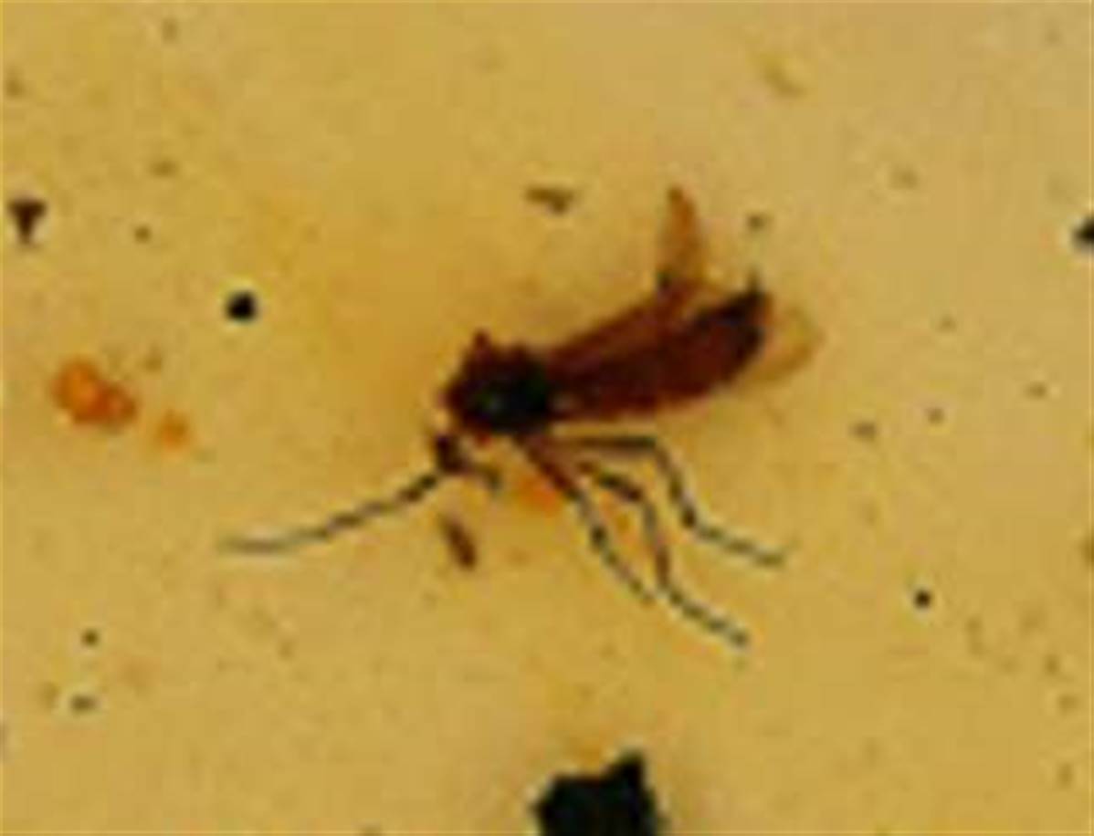 POLISHED COLUMBIAN COPAL SPECIMEN DISPLAYING INSECT INCLUSIONS.