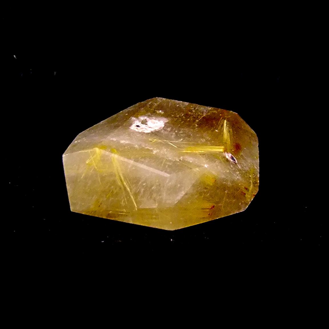 POLISHED GOLDEN RUTILATED QUARTZ FREE FORM CRYSTAL SPECIMEN.