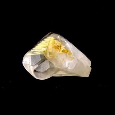 POLISHED GOLDEN RUTILATED QUARTZ FREE FORM CRYSTAL SPECIMEN.