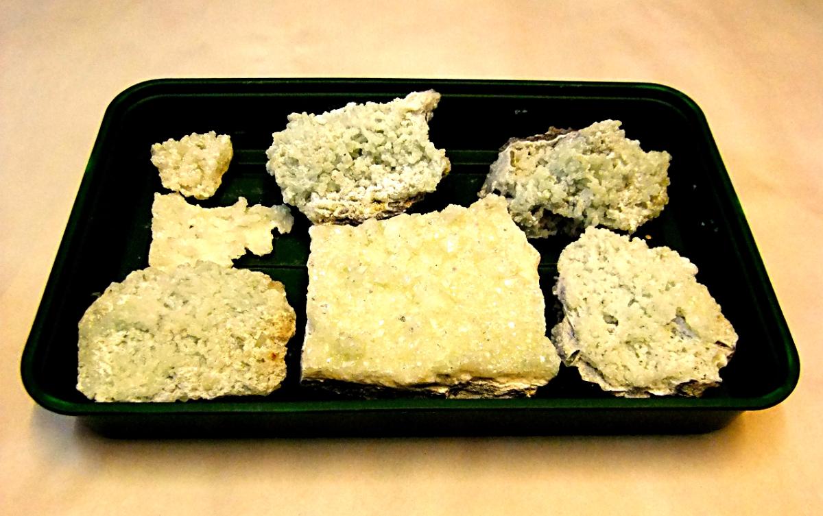PREHNITE CRYSTAL CHUNKS (ONE OFF TRAY LOT).   SP10306WHSHLF