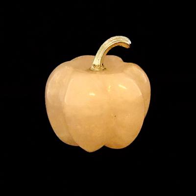 Pumpkin Carving in Rose Quartz featuring silver plated stalk detailing.