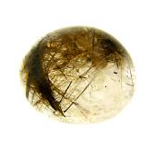 • QUARTZ DOME POLISHED PEBBLE SPECIMEN FEATURING GOLDEN RUTILE INCLUSIONS.   SP10813POL
