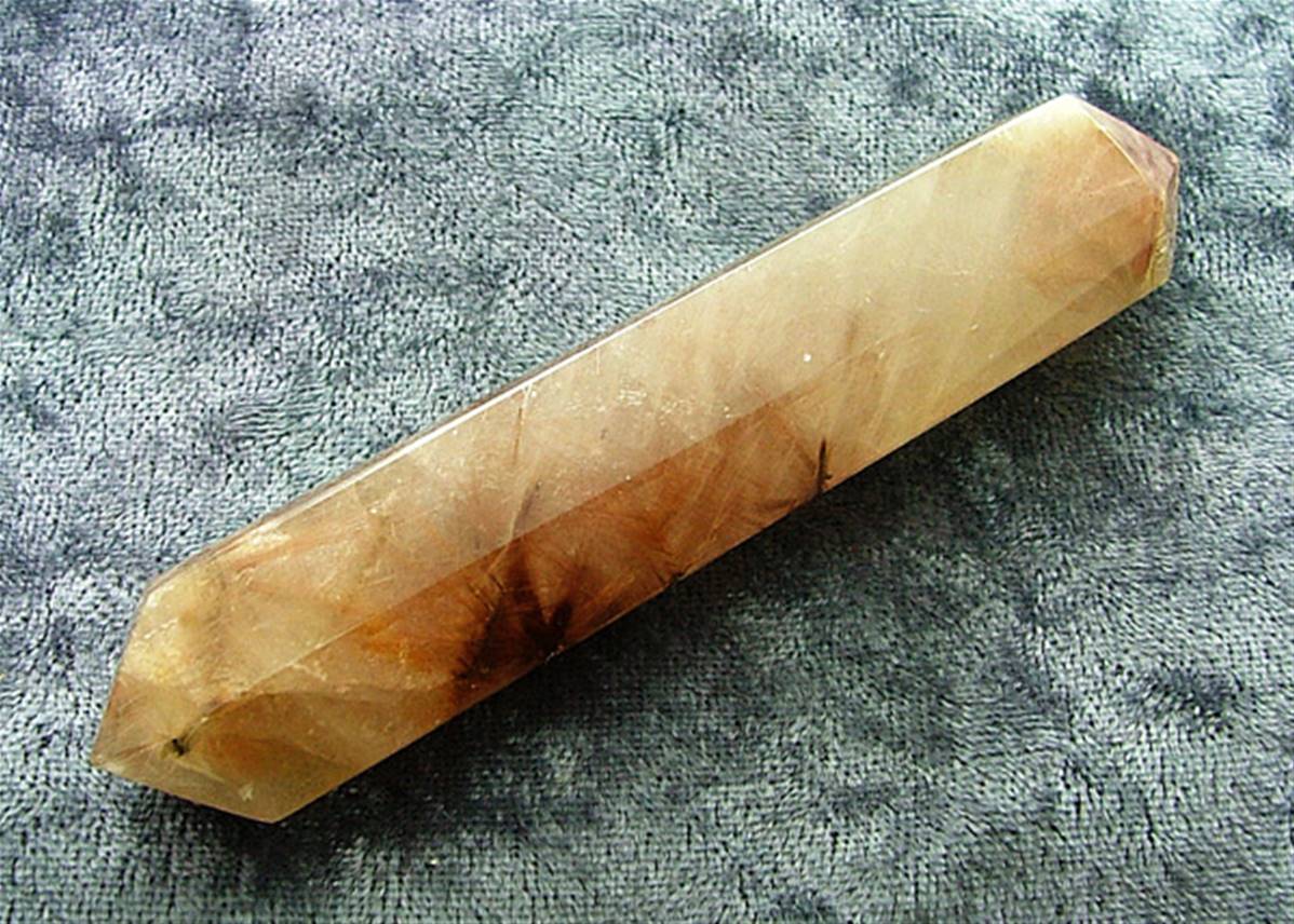 THIS WAND FEATURES GOLDEN RUTILE INCLUSIONS & IRON STAINING.