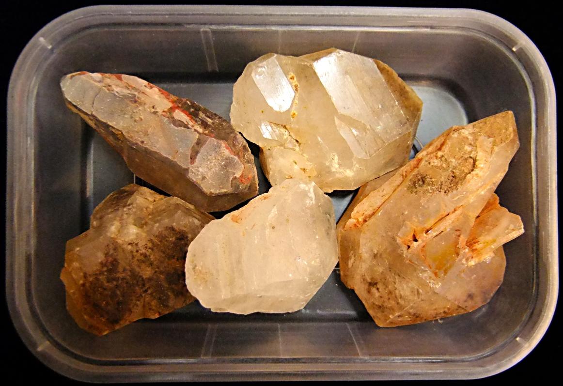 QUARTZ DOUBLE TERMINATED POINTS (5 PIECES) WHOLESALE TRAY LOT.