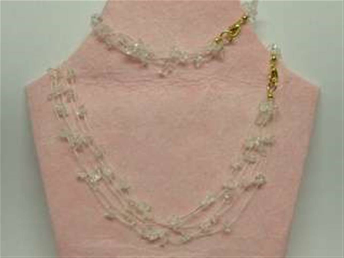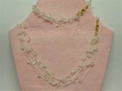 QUARTZ THREADED GEM CHIP 18" NECKLACE & 7" BRACELET TWO PIECE SET. SPR1016